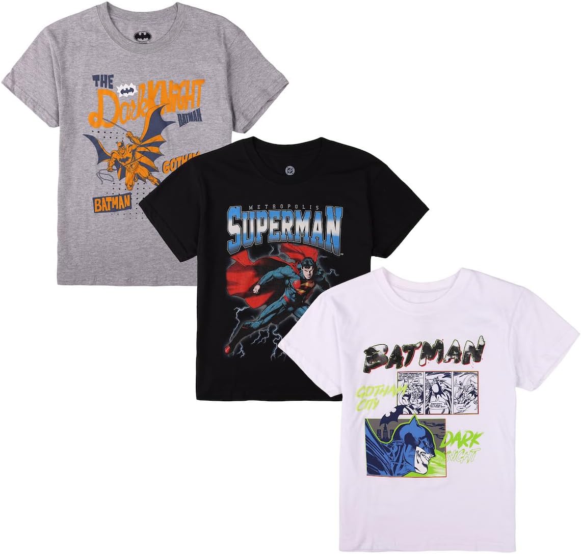 Bioworld Batman Dark Knight Boy’s 3-Pack Crew Neck Short Sleeve T-Shirt Set