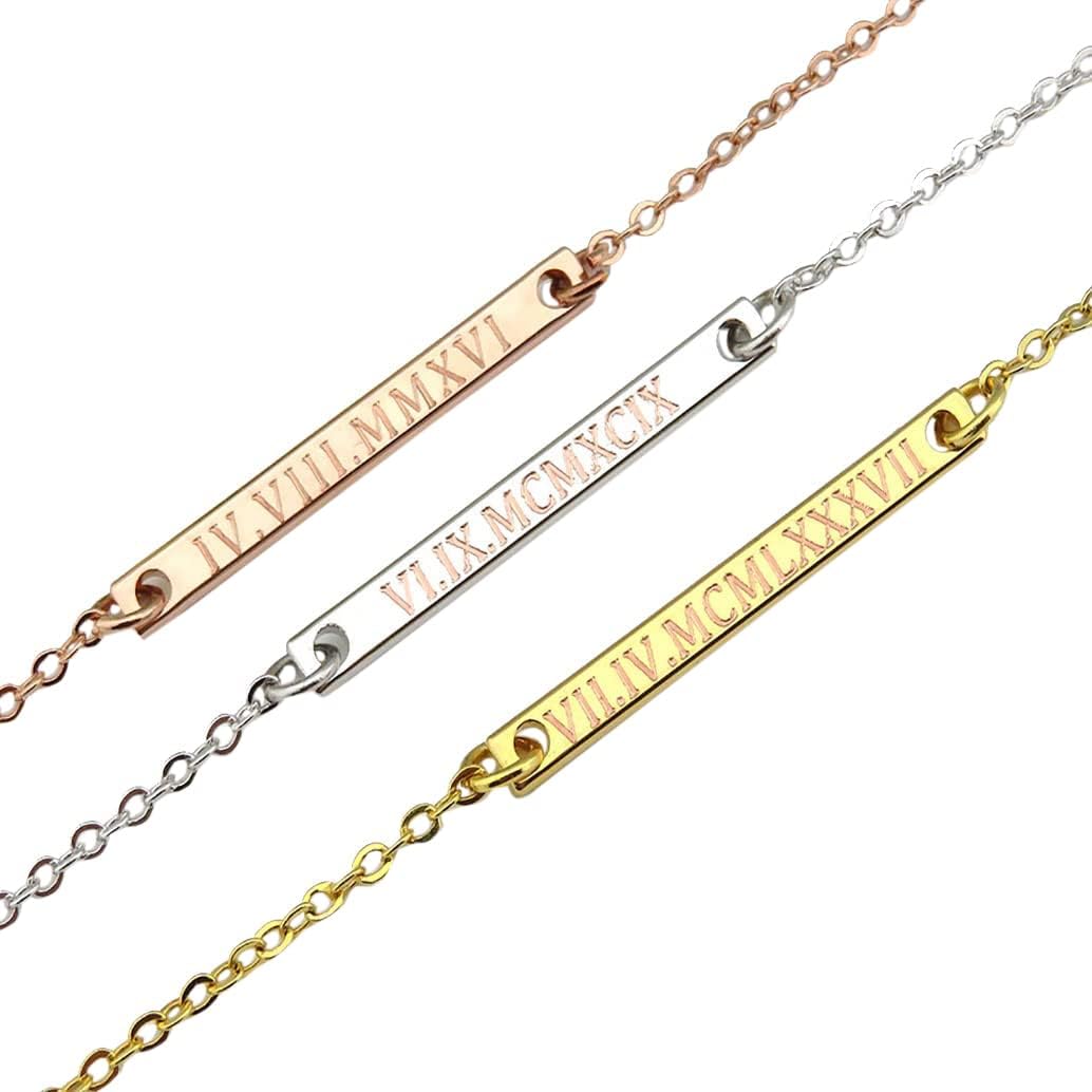 Roman Numeral Necklace, Handmade Necklace, engraved necklace, birthday necklace, gift for her, wedding date necklace, personalized necklace, date necklace, custom engraved bar necklace