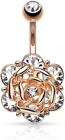 Pierced Owl - 14GA Stainless Steel CZ Crystal Gemmed Flower Belly Button Ring