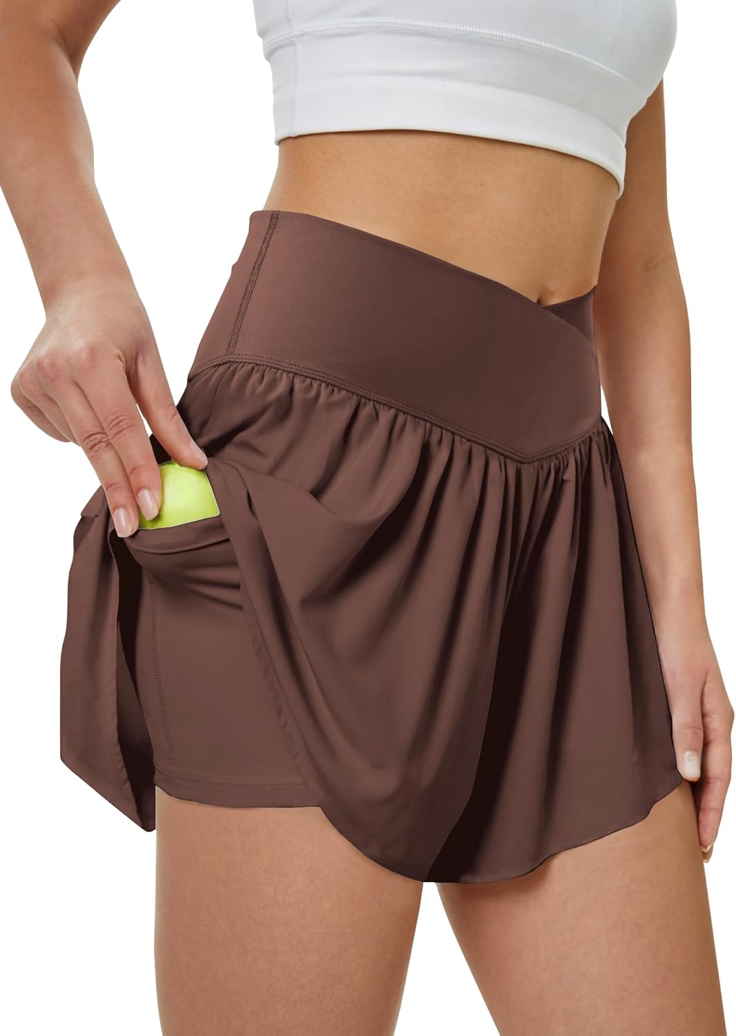 Women's Athletic Running Shorts with Pockets Crossover Butterfly Flowy Shorts Cute Summer Skorts