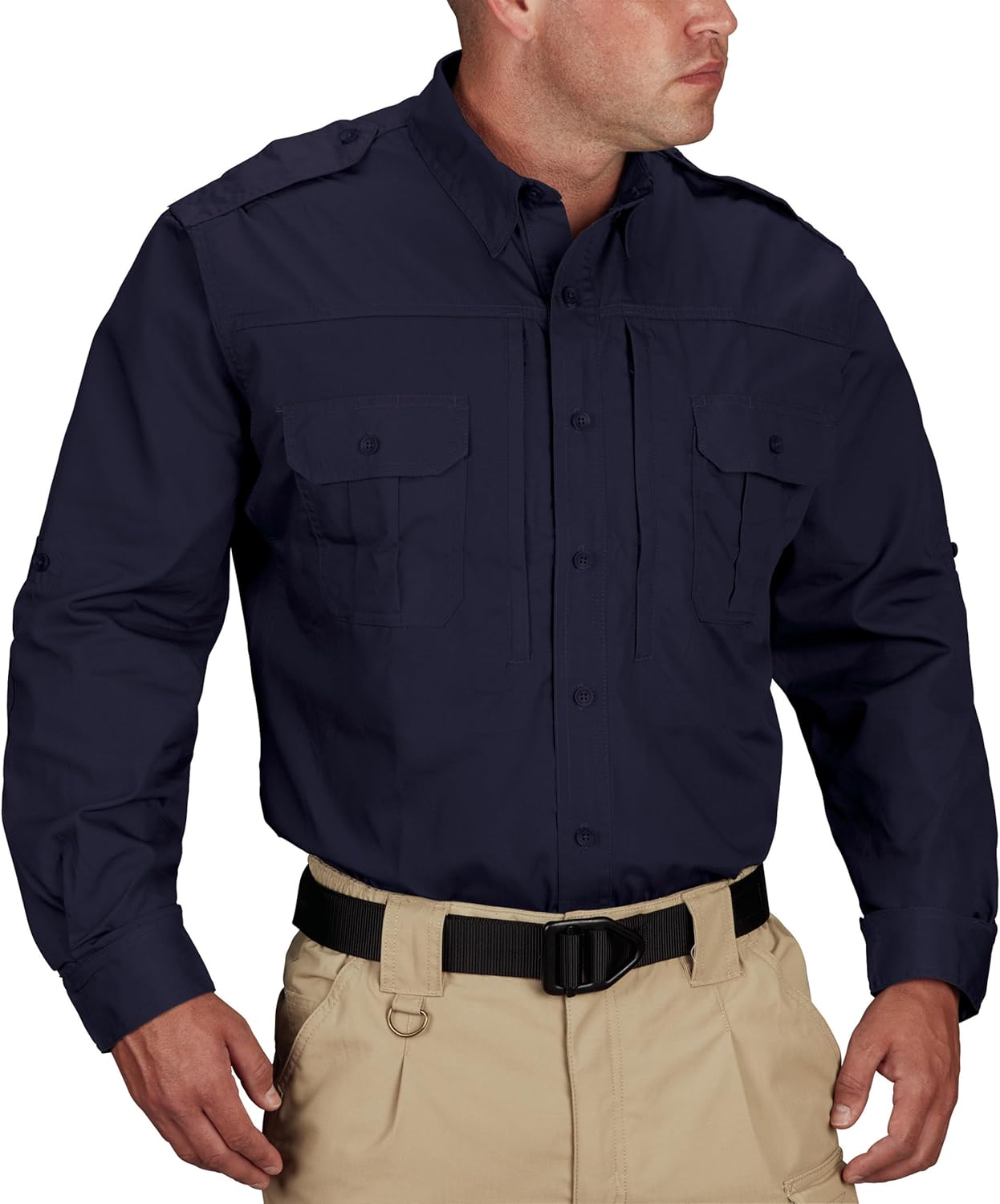Propper Tactical Long Sleeve Ripstop Shirt – Epaulettes, Teflon Fabric Protection & Concealed Document Pockets for Public Safety in LAPD Navy, Large Long