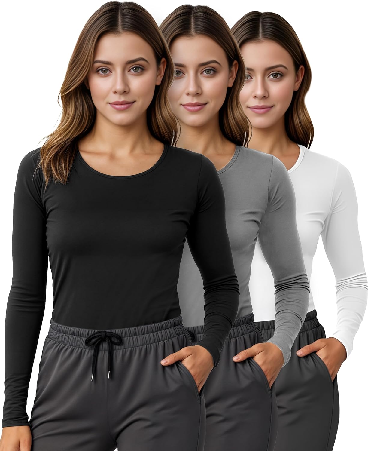 NY Threads 3 Pack Nurse Underscrub Long Sleeve Women Slim fit Under Scrub Shirt