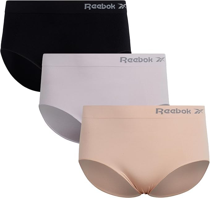 Reebok Womens Briefs Underwear - 3 Pack Soft Stretch Performance High Waisted Brief Panties - Seamless Underwear for Women