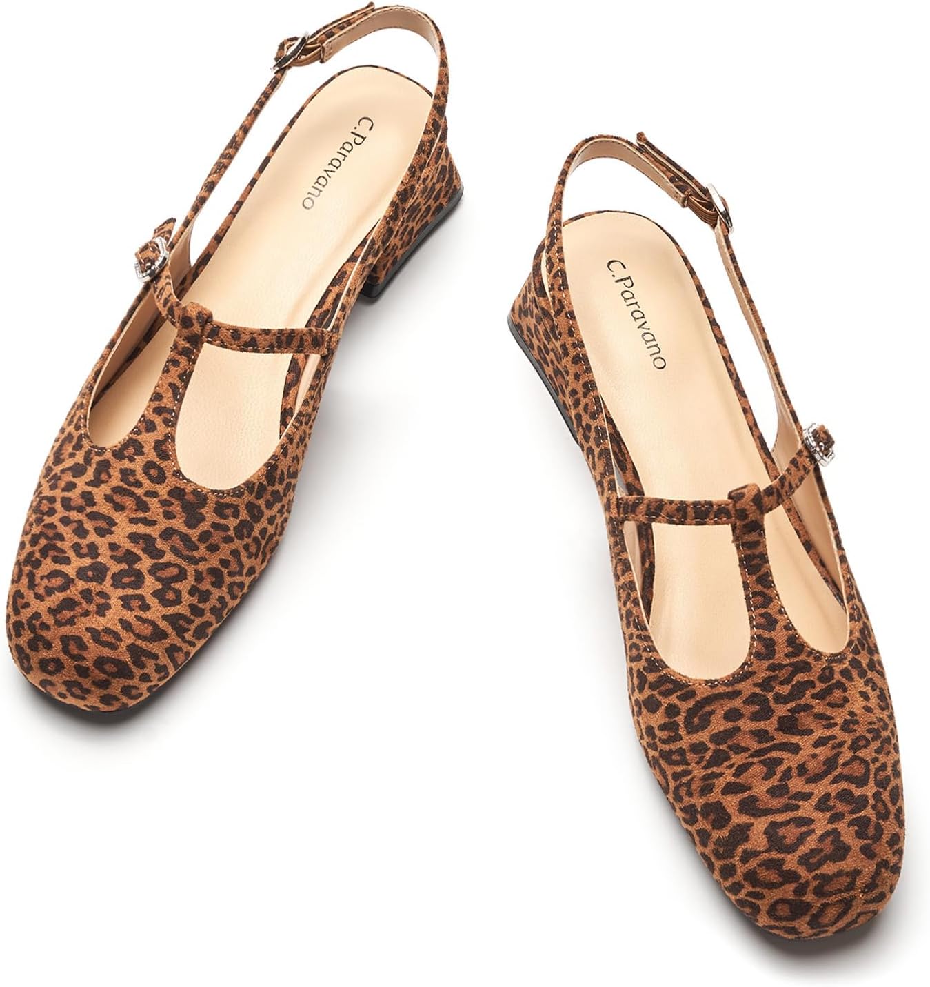 C.Paravano Slingback Heels for Women | T-Strap Mary Jane Shoes | Womens Pumps | Low Heel Dress Shoes