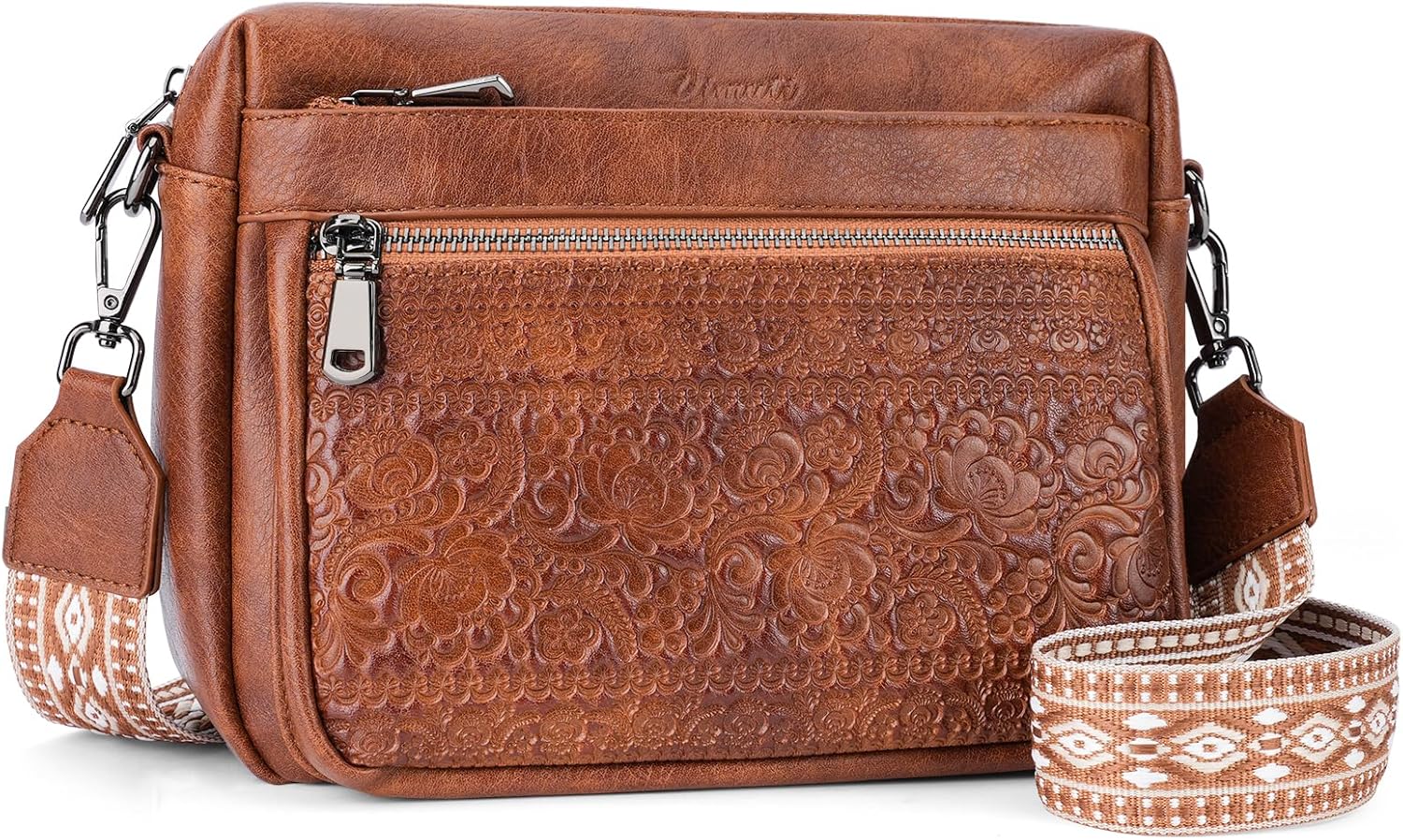Crossbody Bags for Women Trendy,Vegan Leather Purses Embossed Design,Multi Pocket Lightweight Shoulder Handbag