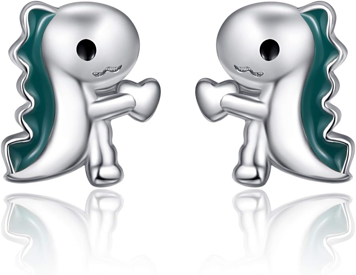 KINGWHYTE Dinosaur Earrings 925 Sterling Silver Animal Studs Green Cartoon Dinosaur Studs Birthday Christmas Anniversary Jewelry Gifts for Women