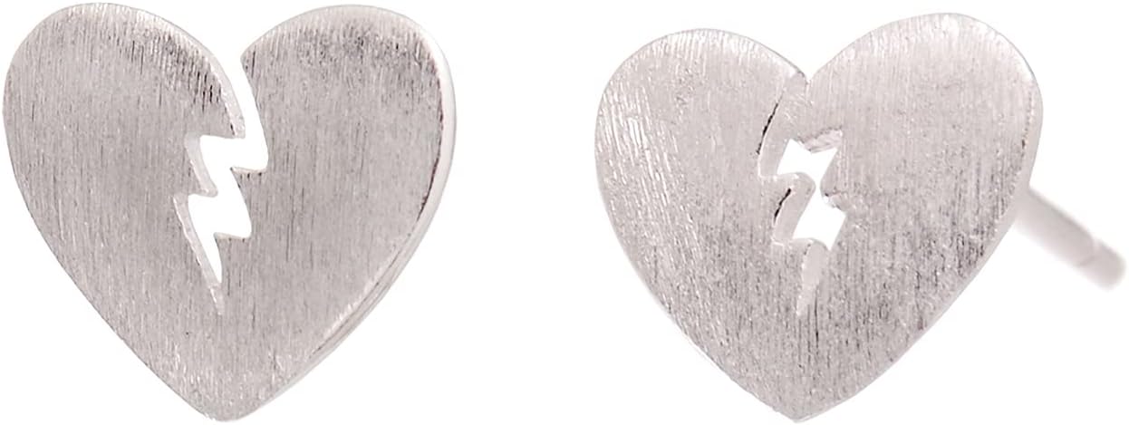 925 Sterling Silver Broken Heart Studs Earrings for Women