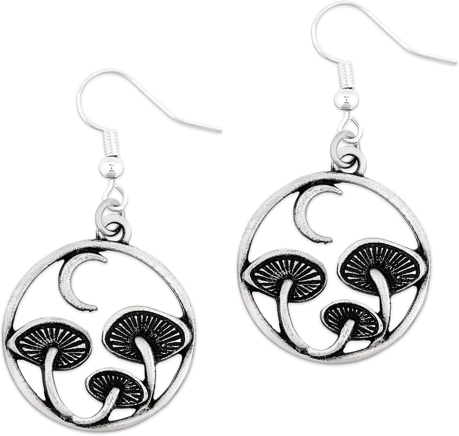 HAQUIL Mushroom Earrings Circle For Women Celtic Knot Crescent Moon Dangle Drop Earrings Moonstone Pendant Mushroom Gifts For Women
