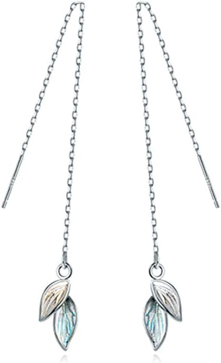 Reffeer Solid 925 Sterling Silver Leaf Chain Dangle Earrings for Women Teen Girls Leaf Dangle Drop Earrings Threader Tassel