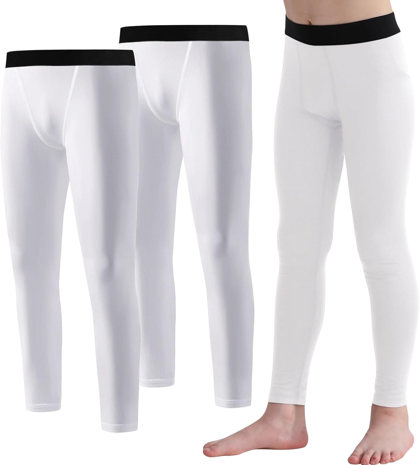 Boys Compression Pants 2 Pack, Youth Athletic Leggings Base Layer Tights for Sports Basketball Football Running 6-14T