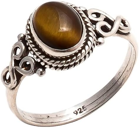 Avicrafts Tiger Eye Stone Ring 925 Sterling Silver Statement Ring For Women Handmade Gemstone Christmas Jewellery Size US 9 Gift For Her