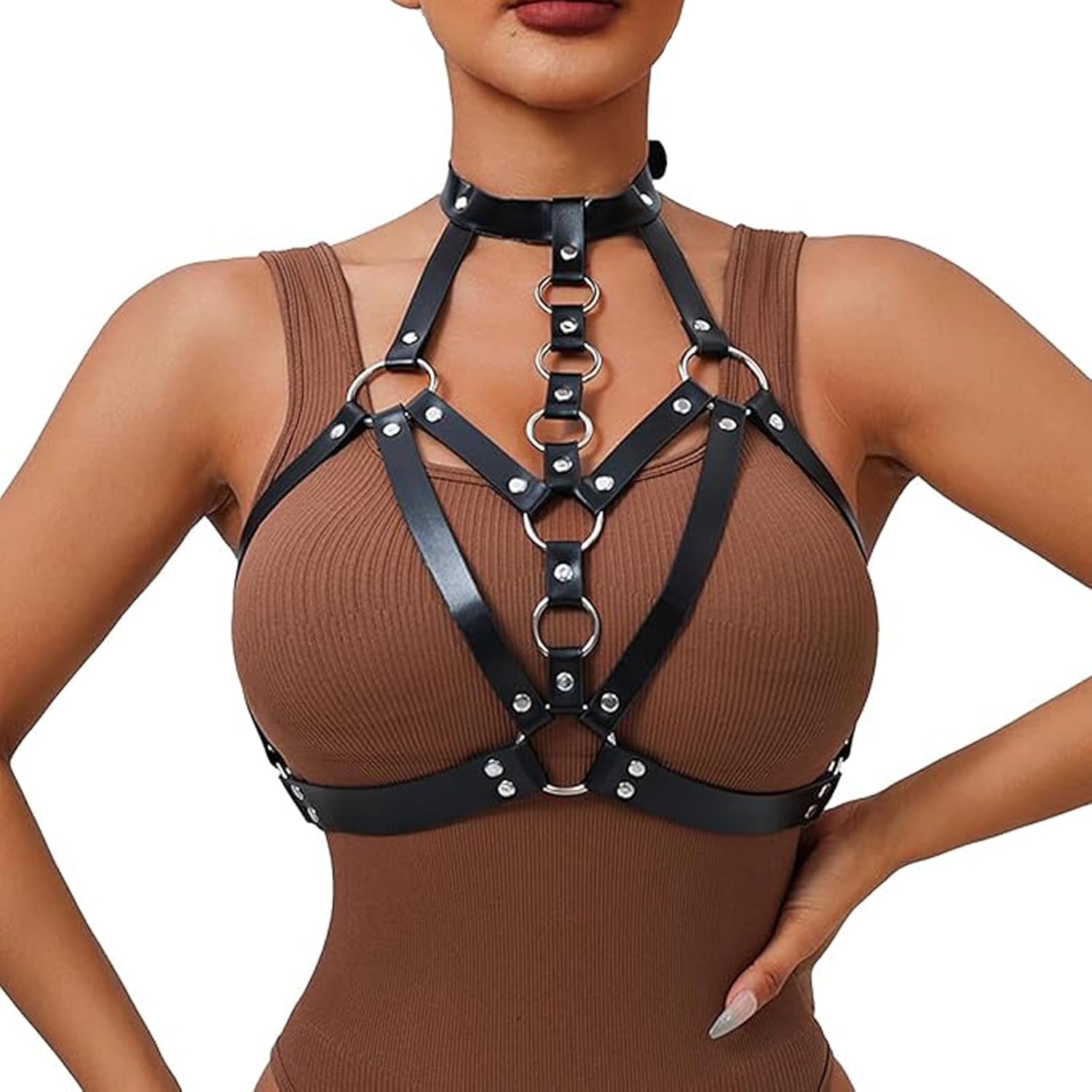 Punk Black Leather Chest Harness Women Fashion Adjustable Strap Body Harnesselt Waist Body Chain Belts,Club Party Caged Bra Harness,Rave Nightclub Belly Bra Jewelry Accessory for Girls