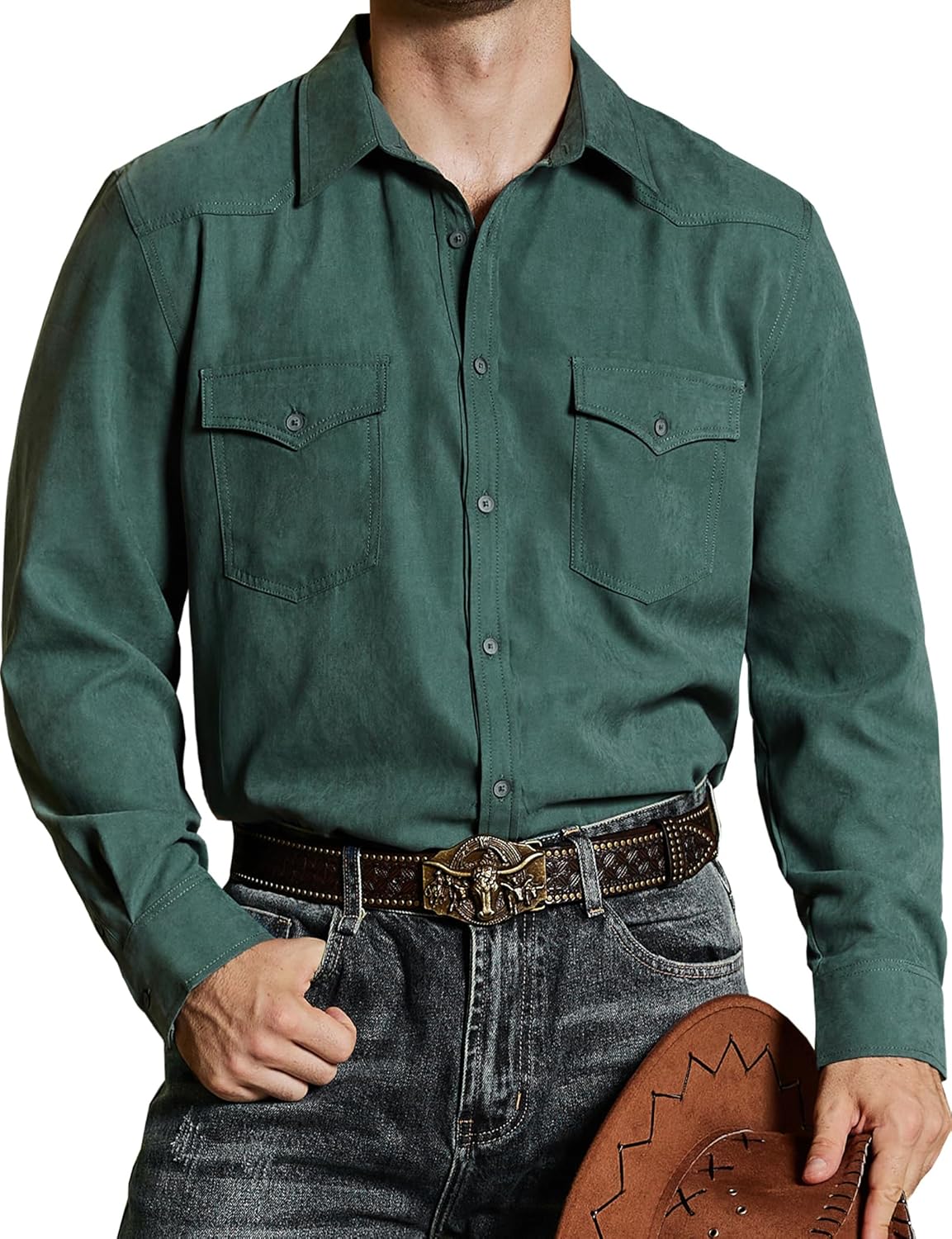 VATPAVE Mens Western Cowboy Shirts Button Up Shirts Long Sleeve Work Shirts for Men with Two Pockets