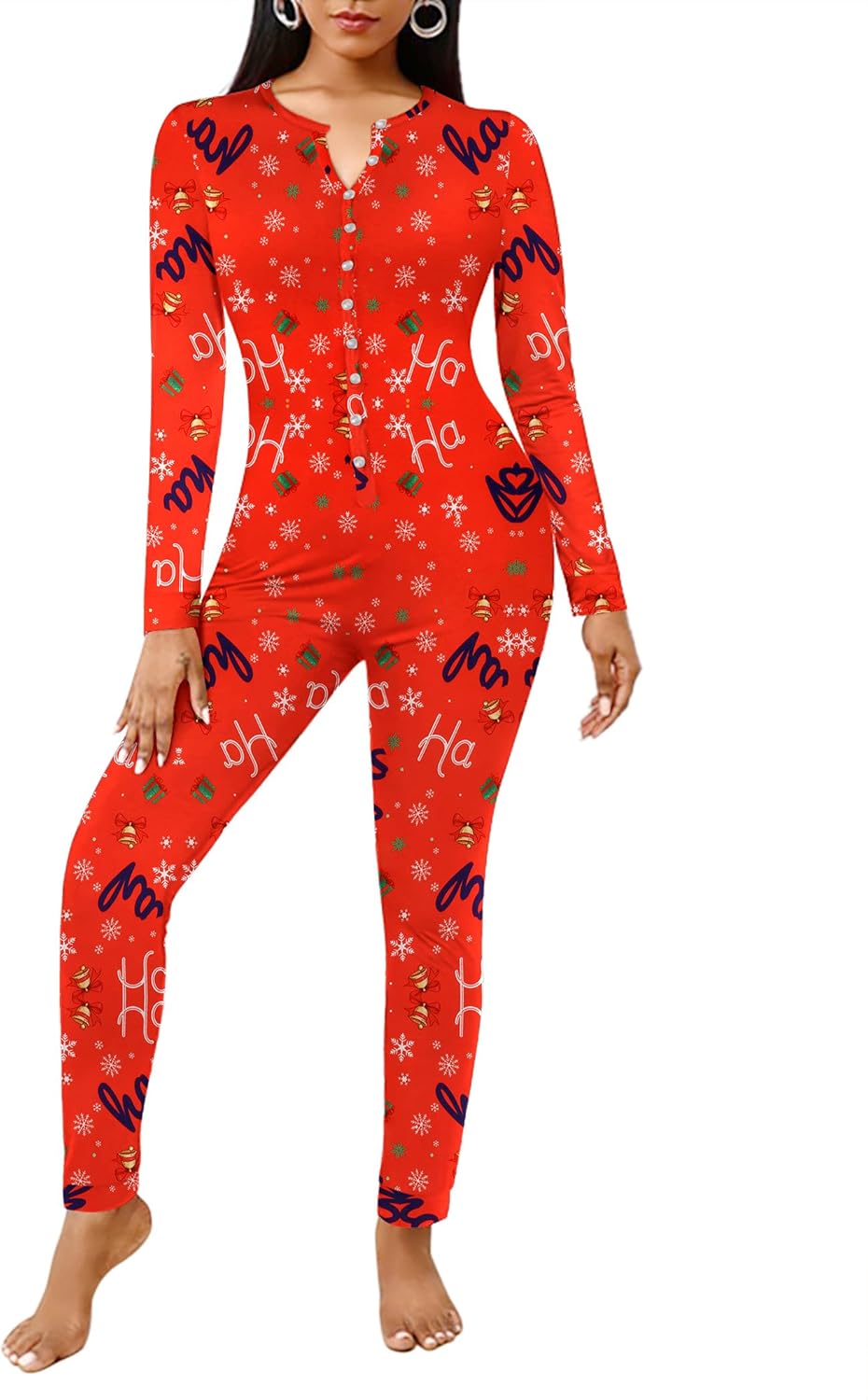 Ekouaer Womens Onesie Adult Button One Piece Pajama Long Sleeve Onesie Pajamas Jumpsuit Sleepwear for Women