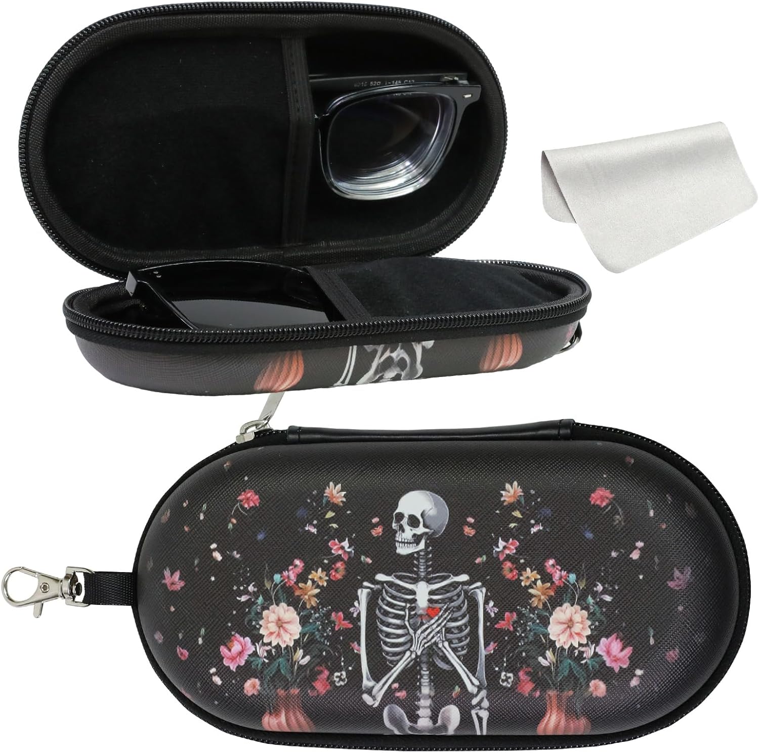 Double Eyeglasses Case, Hard Shell Dual Sunglasses Organizer with Zipper Clip Travel Glasses Storage for Women Men