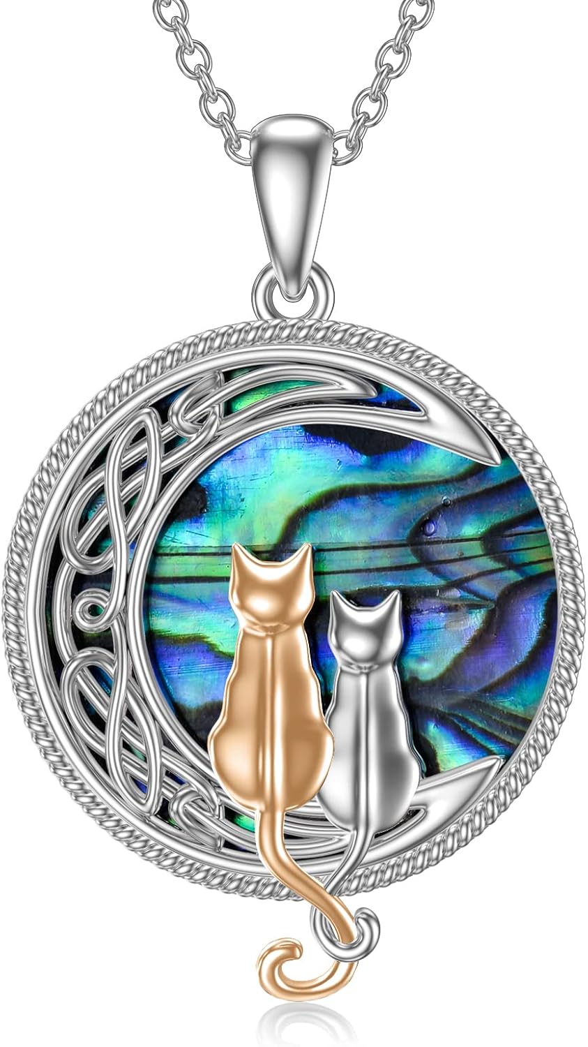 TOUPOP Cat Necklace Sterling Silver Abalone Shell Celtic Cat on the Moon with Abalone Shell Birthday Christmas Jewelry Gifts for Women
