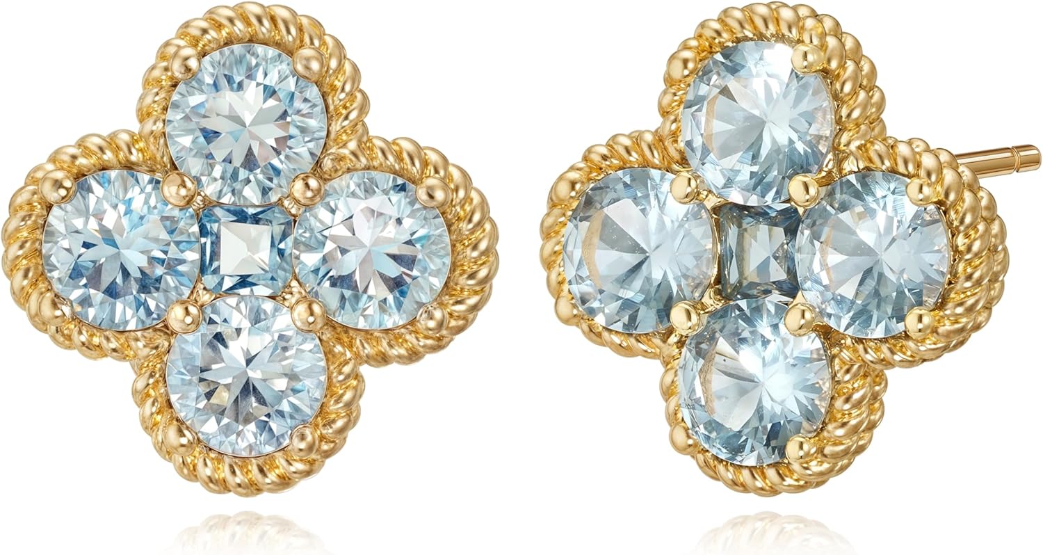 Gold Stud Earrings for Women Trendy 14K Gold Plated Dainty Small Red Flower Cubic Zriconia Clover Studs Birthstone Earrings Jewelry for Women Birthday Gifts