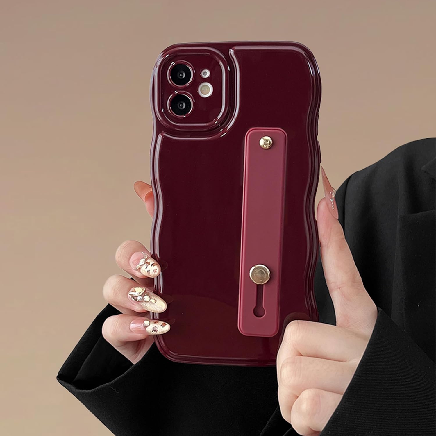 FABSPARK Phone Case for iPhone 12 with Flexible Adjustable Soft Finger Hand Wrist Strap Holder Kickstand,Wave Design Wavy Frame Silicone Aesthetic for iPhone 12 Phone Case,Wine Red