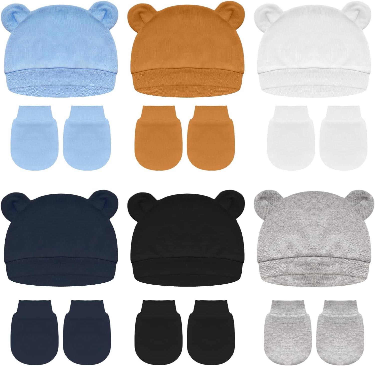 Newborn Baby Hats and Mittens Set Bear Ear Baby Beanie No Scratchs Gloves Newborn Hats Cotton Infant Caps Boys Girls