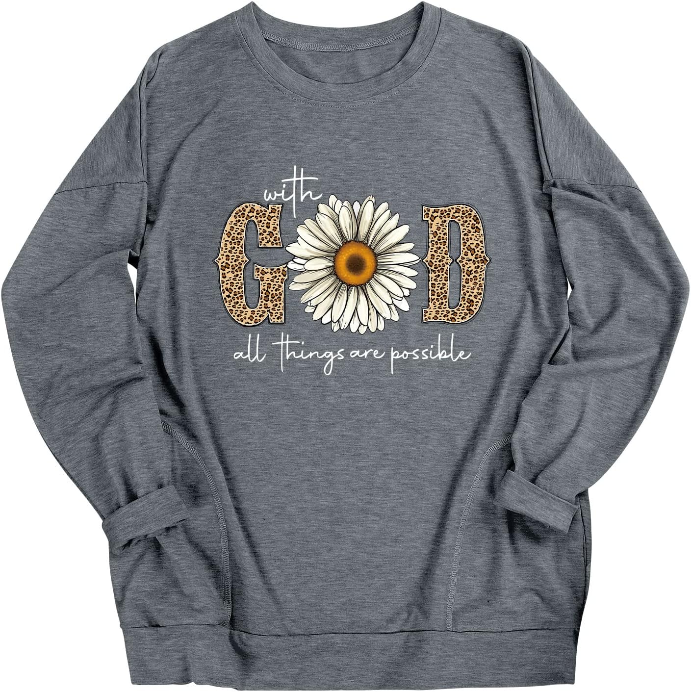 Christian Shirts for Women Faith Religious Sayings T Shirt Bible Verse Inspirational Long Sleeve Tops with Pocket