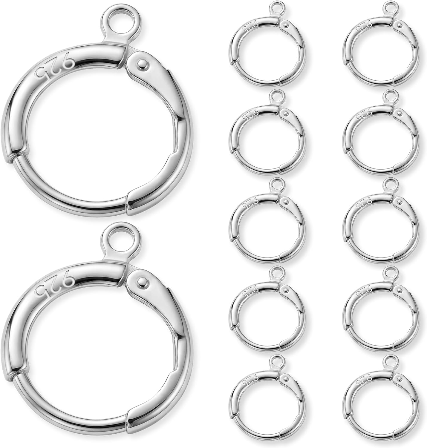 JUNCHONG 12Pcs Earring Hooks, Round Small Huggie Hoop with Loop Ear Leverback Hooks, Hypoallergenic 14mmx2mm Earring Findings for Jewelry Making, Silver