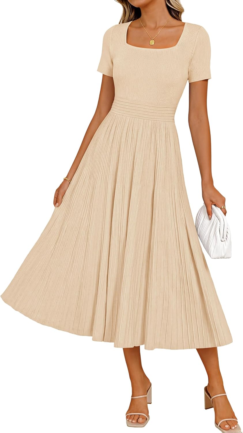 ZESICA Womens Summer Pleated Midi Dress 2026 Spring Business Casual Short Sleeve A-Line Elegant Wedding Guest Party Dresses