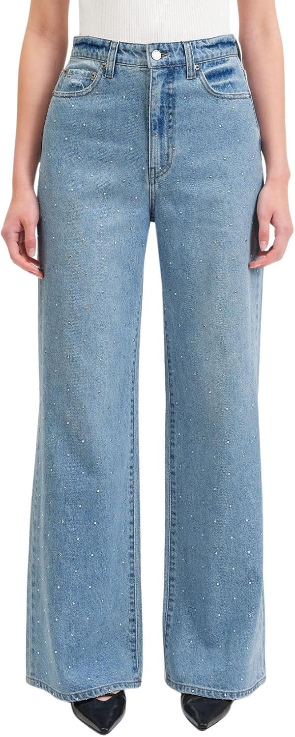 DAZE Women's Far Out High Rise Wide Leg Denim Jeans (Twinkle, 31)