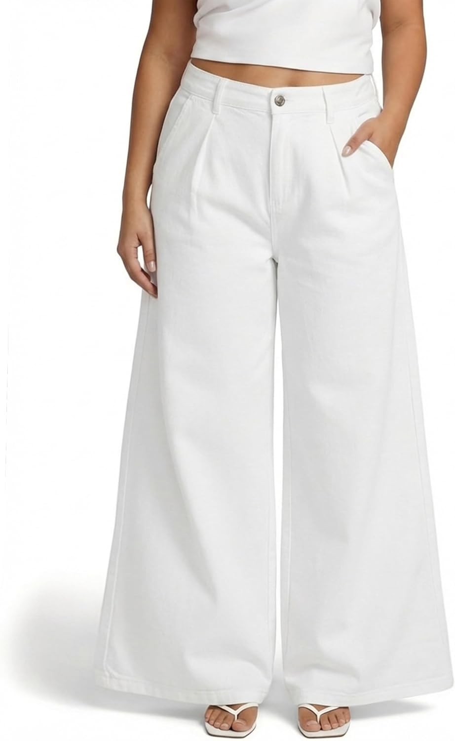 Tapata Women's Wide Leg Jeans 24/27/30/33 Inseam Petite Elastic Waist Baggy Denim Pants Plus Size Long Palazzo Trousers