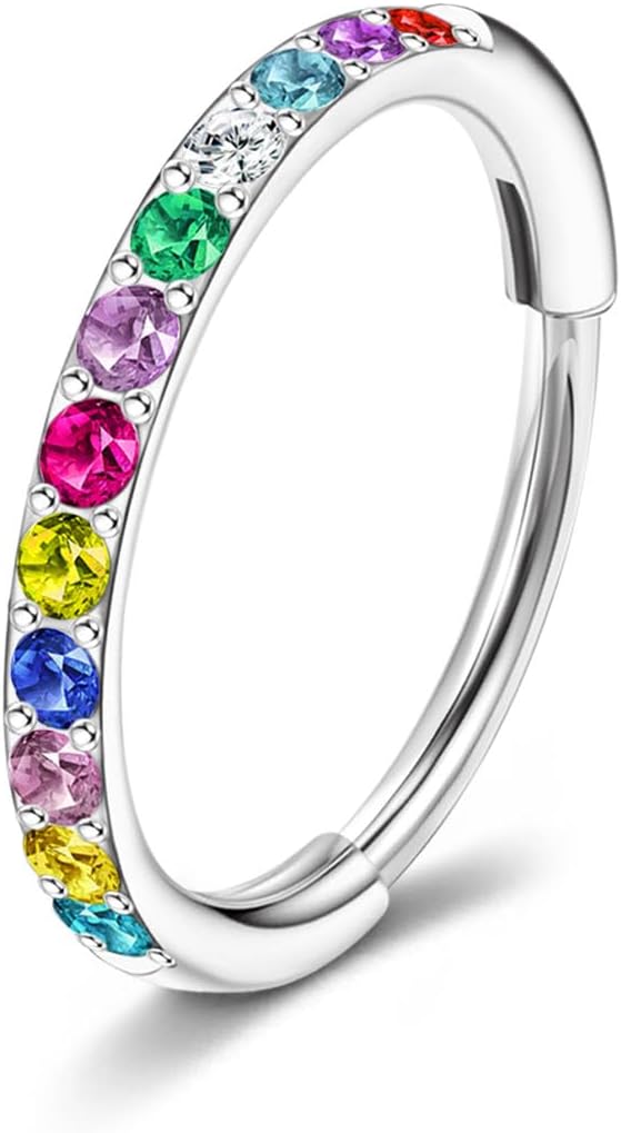 Birthstone Nose Hoops for Women Men-316L Surgical Steel Hinged Nose Hoops 20G Clicker Septum Nose Ring Lip Helix Cartilage Hoop Earring Daith Rook Conch Body Piercing Jewelry 6MM 7MM 8MM 10MM