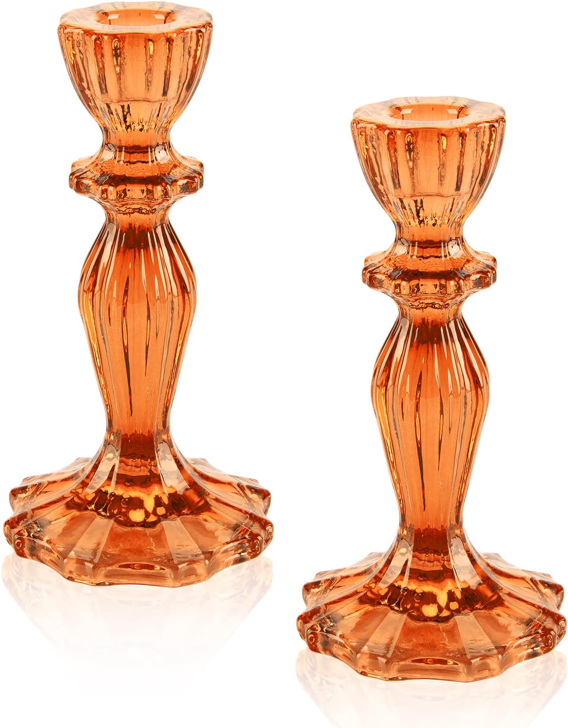 Glass Candle Holders, 2PCS Pillar Candle Holders Decorative Candlestick Holders Table Centerpieces Valentines Wedding Home Decor, Orange