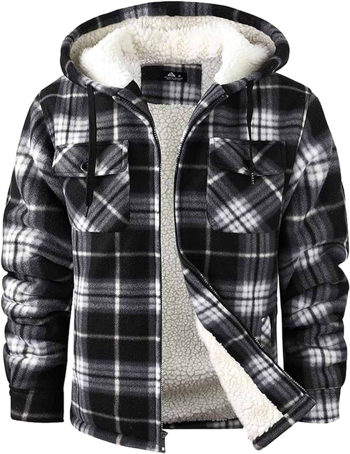 GEEK LIGHTING Men's Flannel Shirts Jacket Sherpa Lined Fleece Plaid Hoodie Long Sleeve Winter Warm Coat