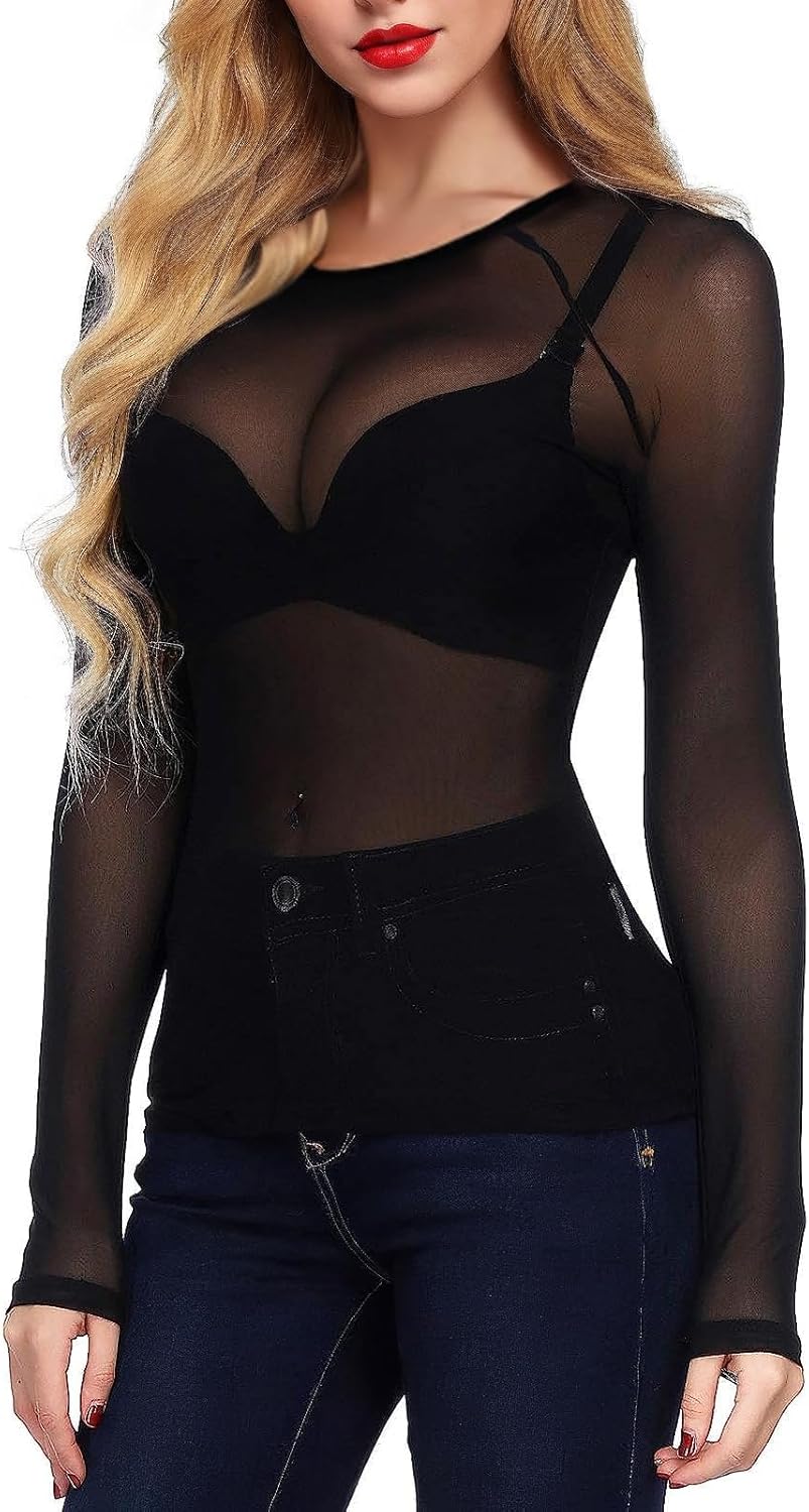 Buauty Sheer Tops for Women,Mesh Fishnet Tops Plus Size,Stylish and Sensational Mesh Blouses for Fashion-Forward Ladies
