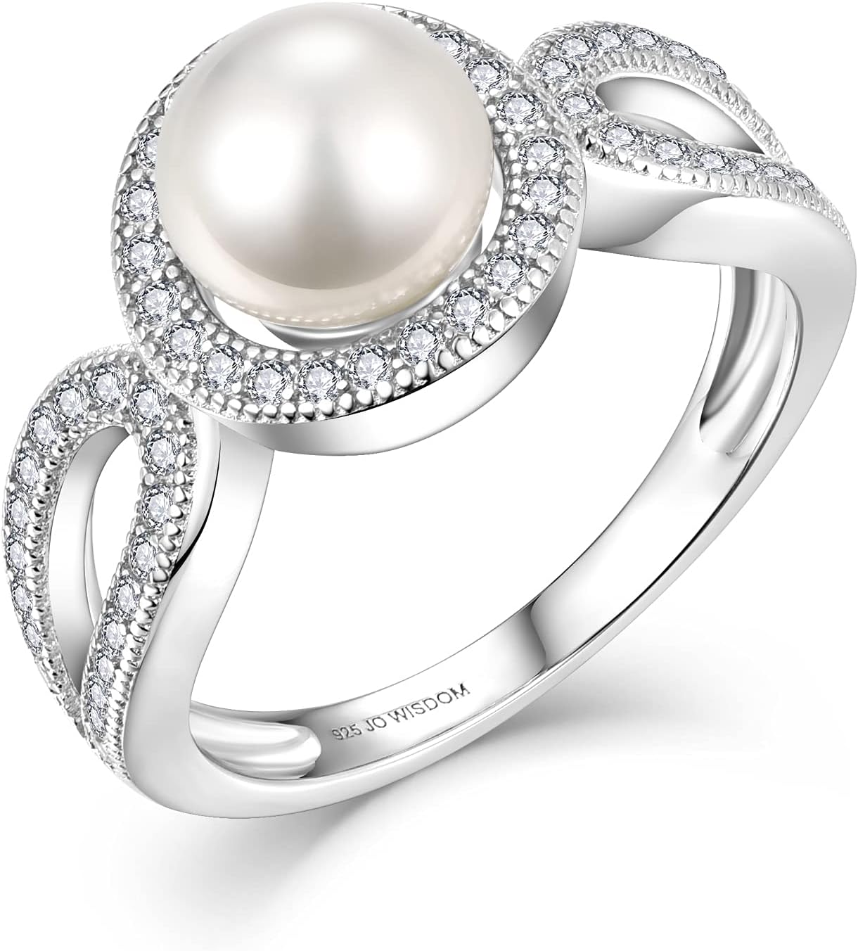 JO WISDOM Women's 925 Sterling Silver Cubic Zirconia Infinity Pearl Ring With 7.5mm White Freshwater Cultured Pearl
