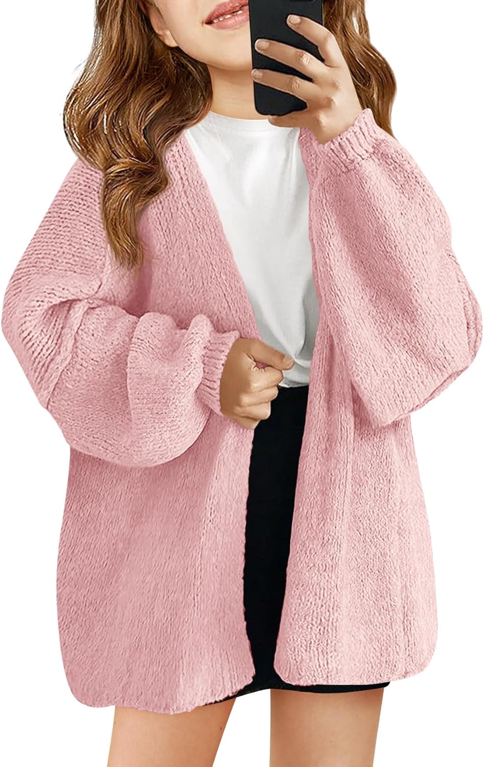 Haloumoning Girls Oversized Cardigan Sweaters Kids Fashion Open Front Long Sleeve Knit Sweater 5-14 Years