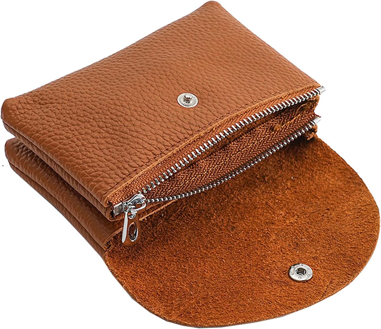 Genuine Leather Mini Change Wallet, Multifunction Zipper Pocket Key Credit Card Headset Lipstick Organizer (Brown)