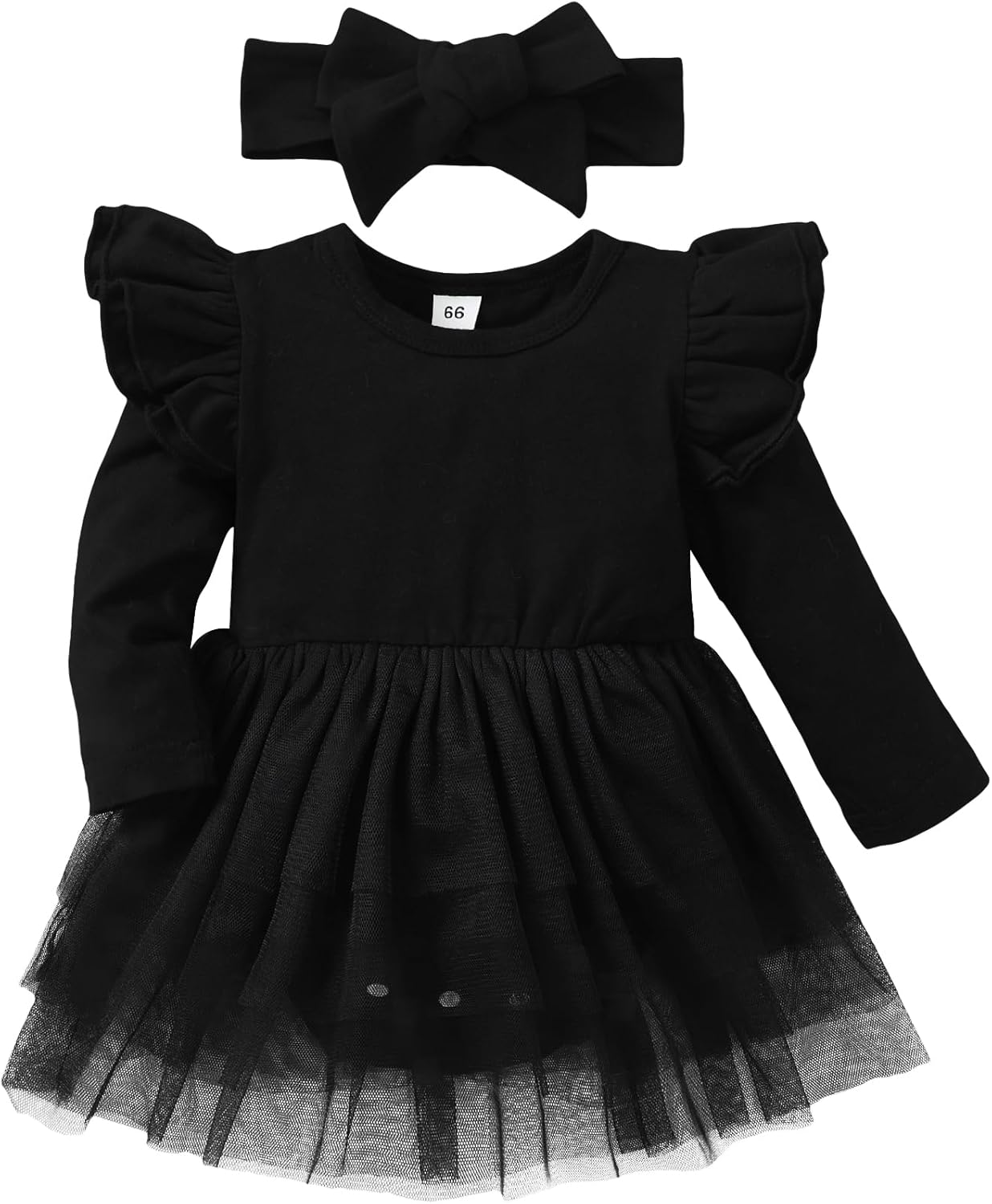 Baby Girl Ruffle Sleeve Romper Dress Outfit Newborn Princess Tulle Dresses Infant Jumpsuit Tutu Skirt Set Clothes