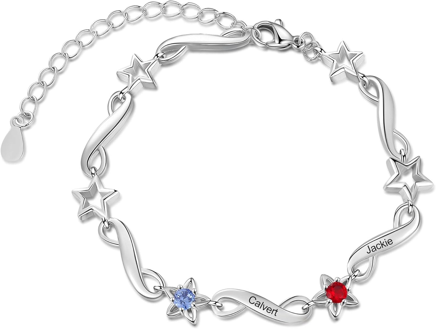 Star Bracelet for Mom Personalized Name Bracelet for Women with 2-6 Birthstones Custom Name Bracelet Charm Birthstone Bracelets for Women Mother Daughter