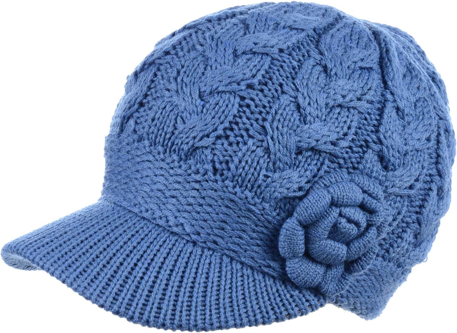 Womens Winter Elegant Cable Flower Knitted Newsboy Cabbie Cap Beret Beanie Hat with Visor, Warm Plush Fleece Lined