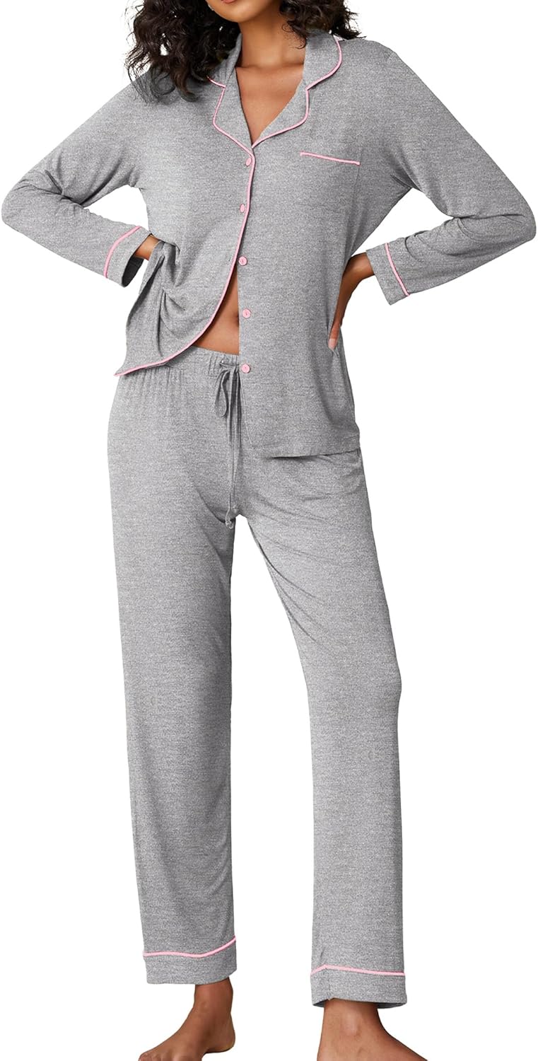 Ekouaer Pajamas Women's Long Sleeve Sleepwear Soft Button Down Loungewear Pjs Lounge Set Nightwear XS-XXL