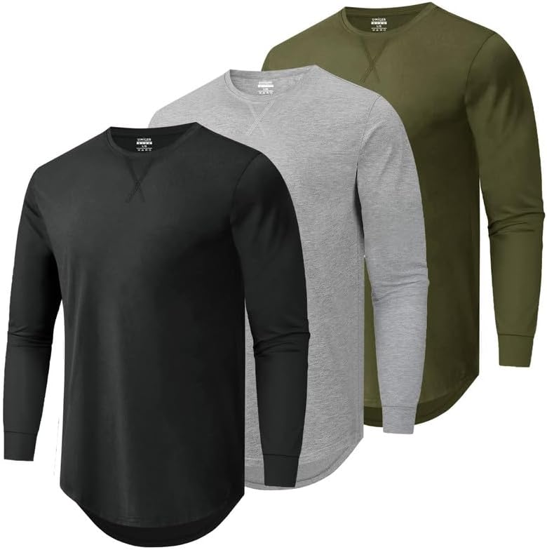 Mens 3 Pack Cotton Hipster Longline T Shirts Curved Hem Plain Hip Hop Short Sleeve Tee Fitted Casual Drop Cuts Crewneck