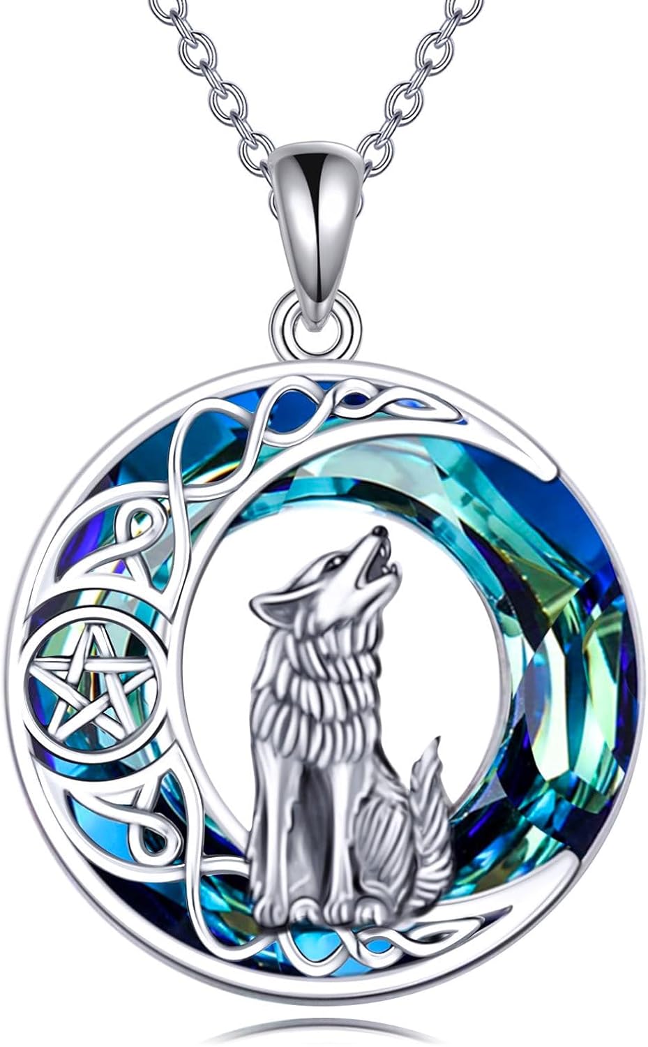 TOUPOP Wolf Necklace Sterling Silver Crystal Wolf Jewelry for Women Birthday Christmas Gifts