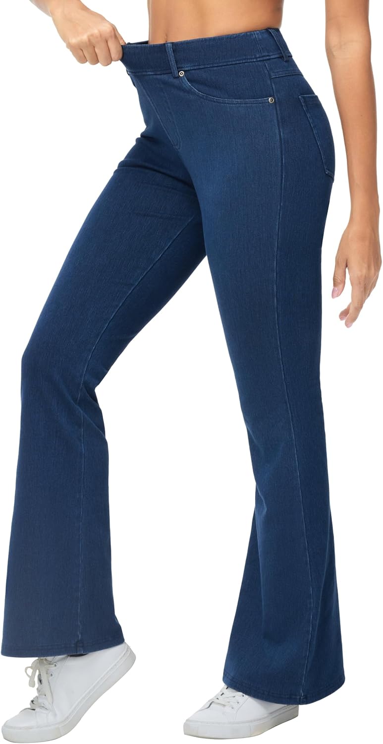 THE GYM PEOPLE Women's Stretchy Bell Bottom Jeans Wide Leg Breathable Pull On Flare Jeggings Pants with Pockets