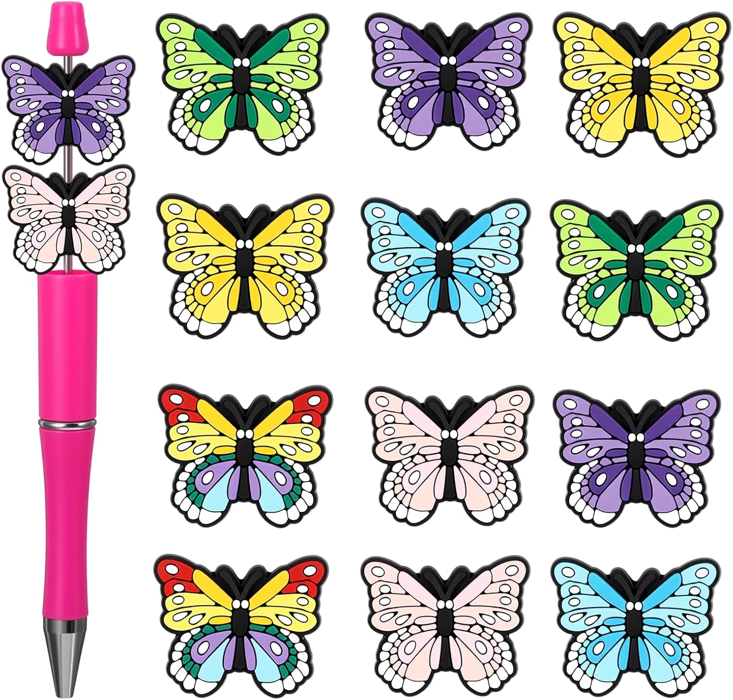 - 【Package Included】You will receive 12 butterfly silicone beads. These colorful butterfly focal beads are ideal for craft enthusiasts to create personalized pieces and are large enough to adorn beaded pens and keychains.