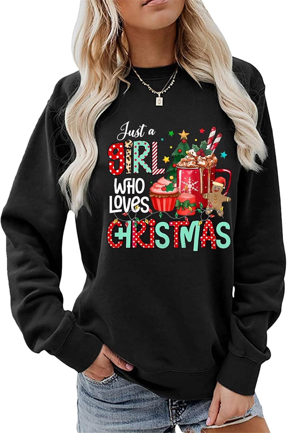 Just A Girl Who Loves Christmas Sweatshirt for Women Cute Christmas Tree Lights Coffee Cup Graphic Crewneck Tops