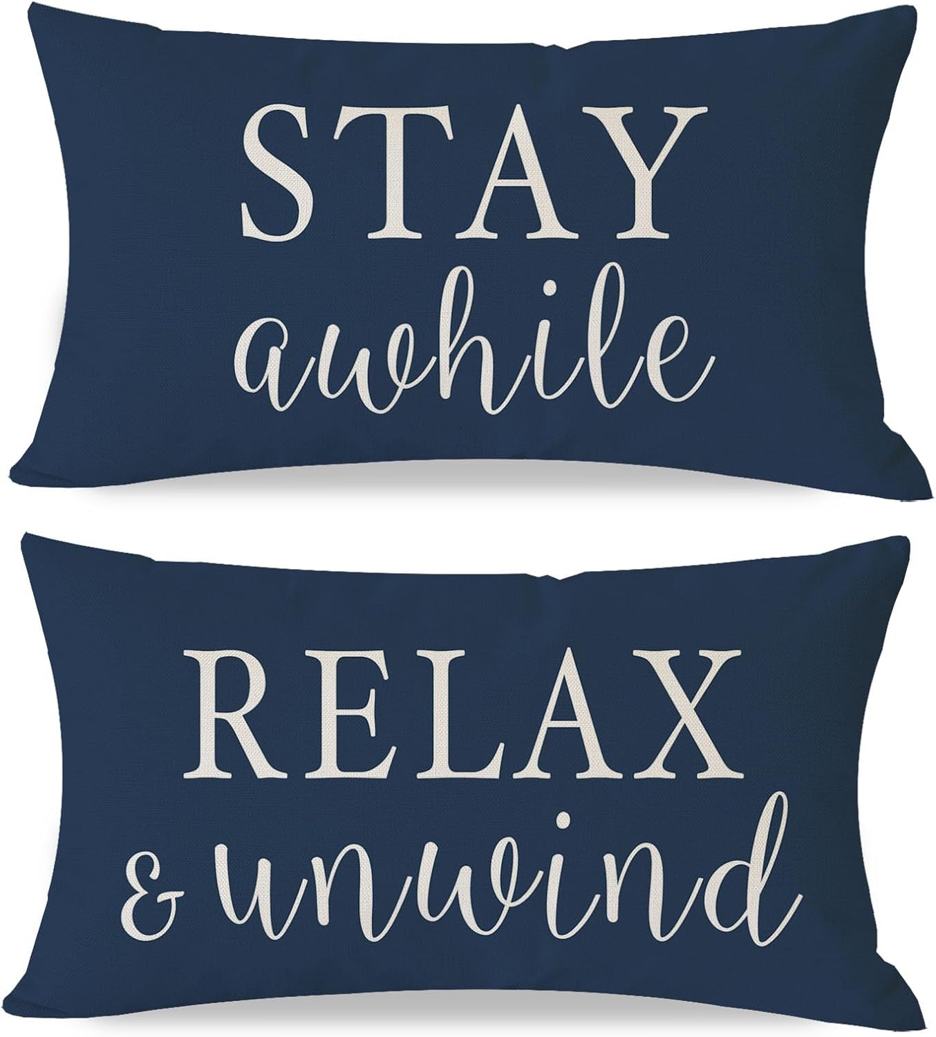 PANDICORN Decorative Throw Pillow Covers 12x20 Inch Set of 2 Stay Awhile Relax & Unwind Blue Outdoor Farmhouse Porch Patio Decorations Cozy Lumbar Cushion Cases for Home Living Room Sofa Couch Decor