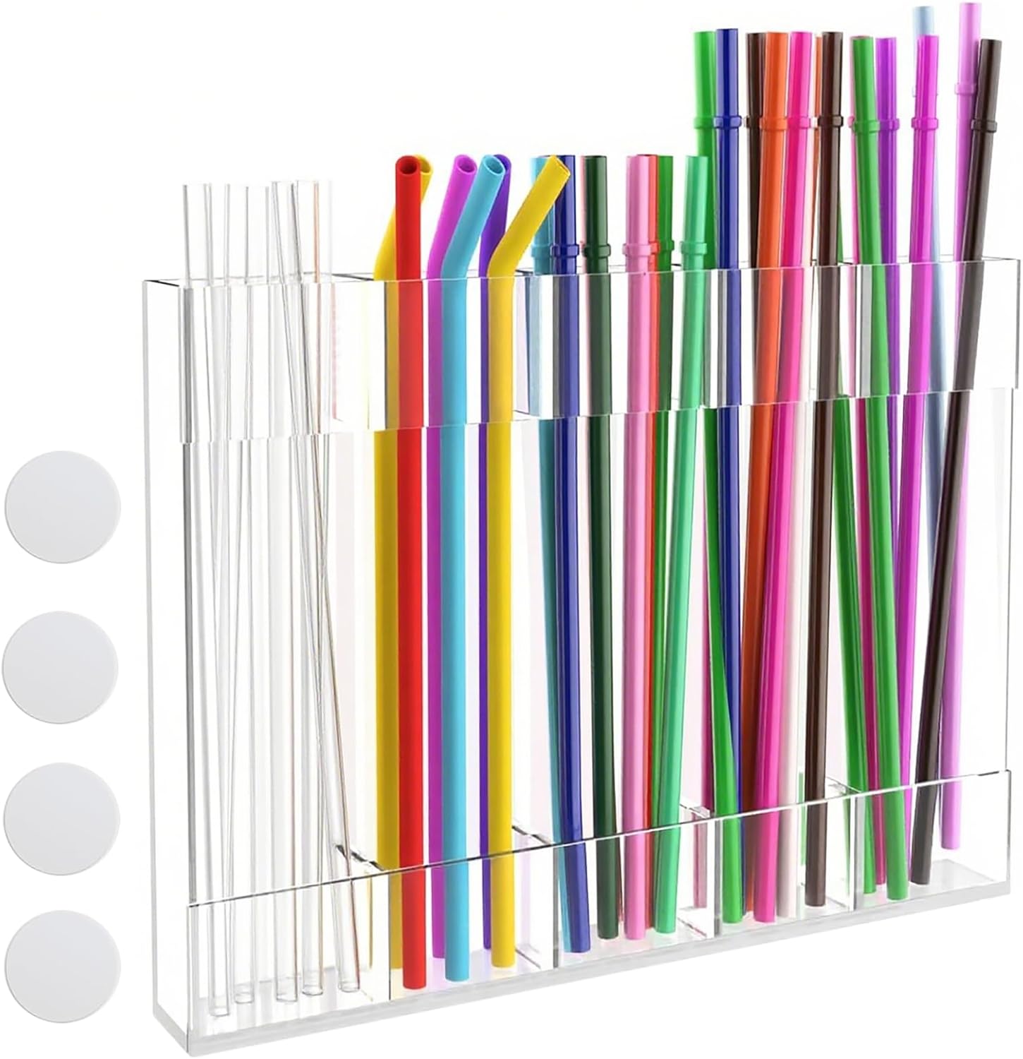 - Shatter-Resistant Acrylic: Crafted from premium, thick acrylic, this straw organizer is built to last. Acrylic organizers resist yellowing, cracks, and impacts, maintaining clarity for years. Note: Acrylic organizers has a protective film on the surface, please remove it before use