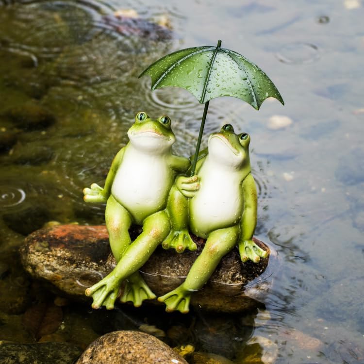 - 🐸【Extra Details】Meticulously sculpted and hand-painted to capture every exceptional detail.The umbrella over the frog couple is the perfect finishing touch.This is really cute
