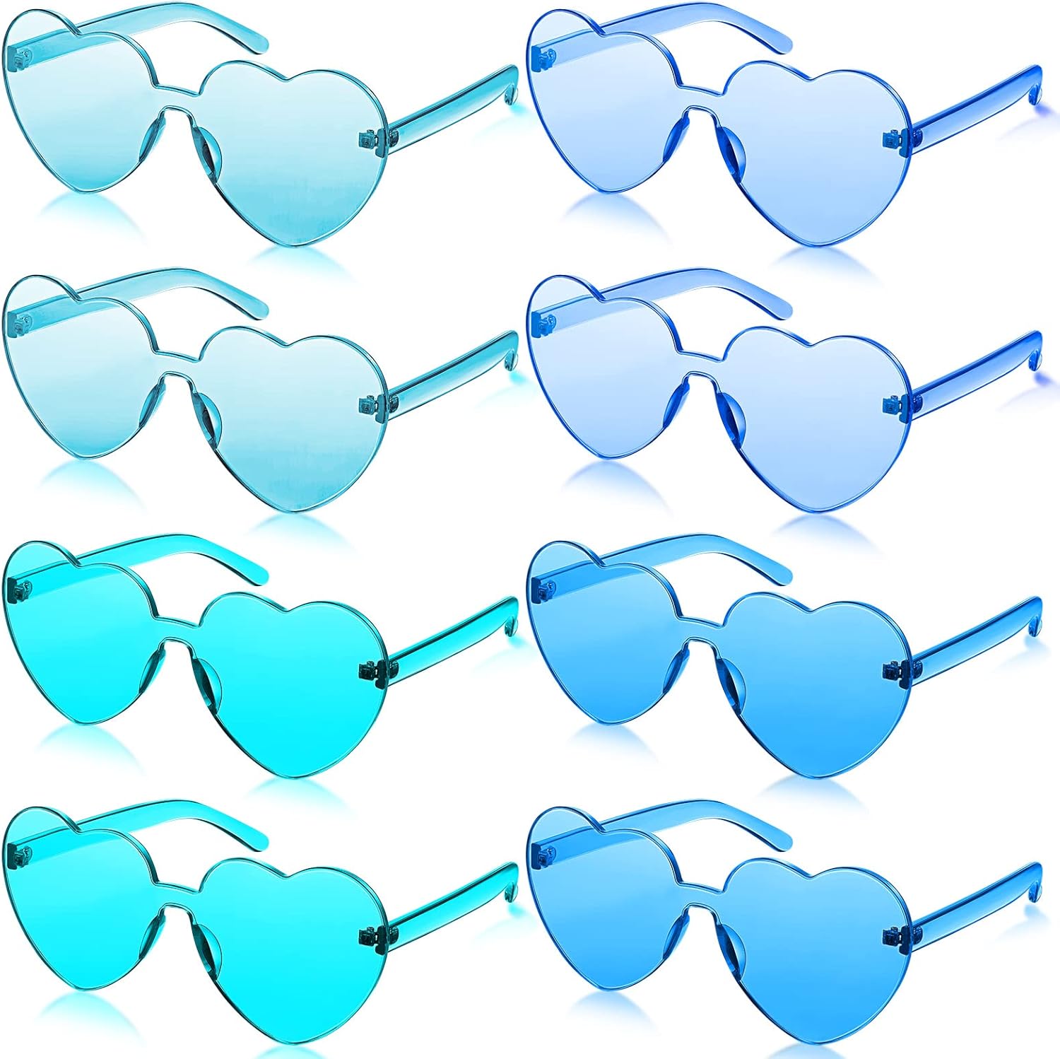 Frienda 8 Pairs Heart Shaped Sunglasses for Women Rimless Heart Glasses Candy Color Sunglasses for Party Favor