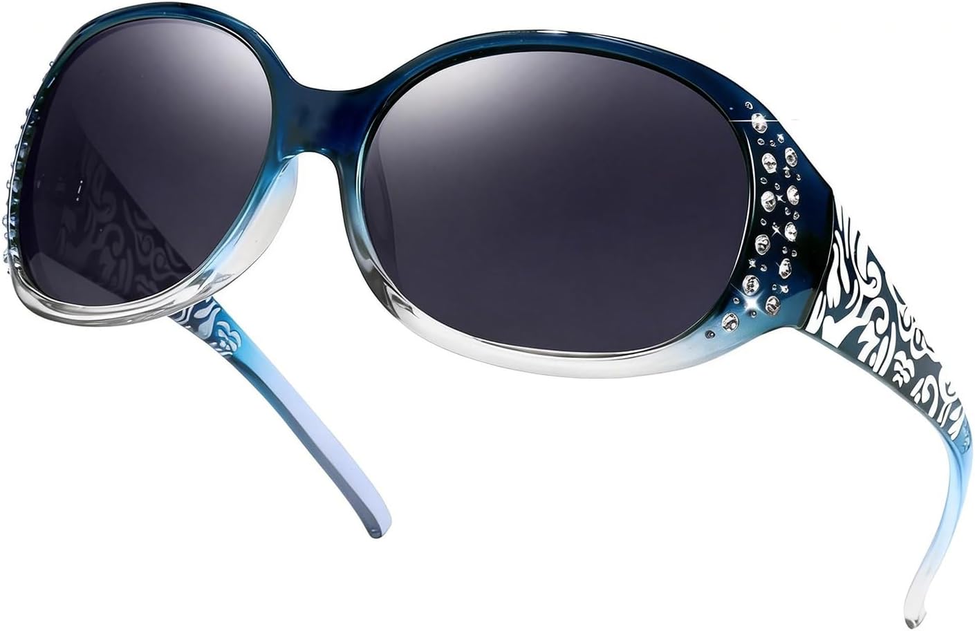 LVIOE Polarized Sunglasses for Women, Rhinestone Wrap Around Sunglasses with UV Protection Lens LS008