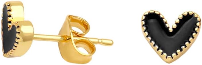 Heart Stud Earrings Cute Gold-tone Nickel Free Love Heart Colorful Enamel Studs Earring for Women Cartilage Piercing Post Hypoallergenic Fashion Jewelry Gifts 7mm*8mm
